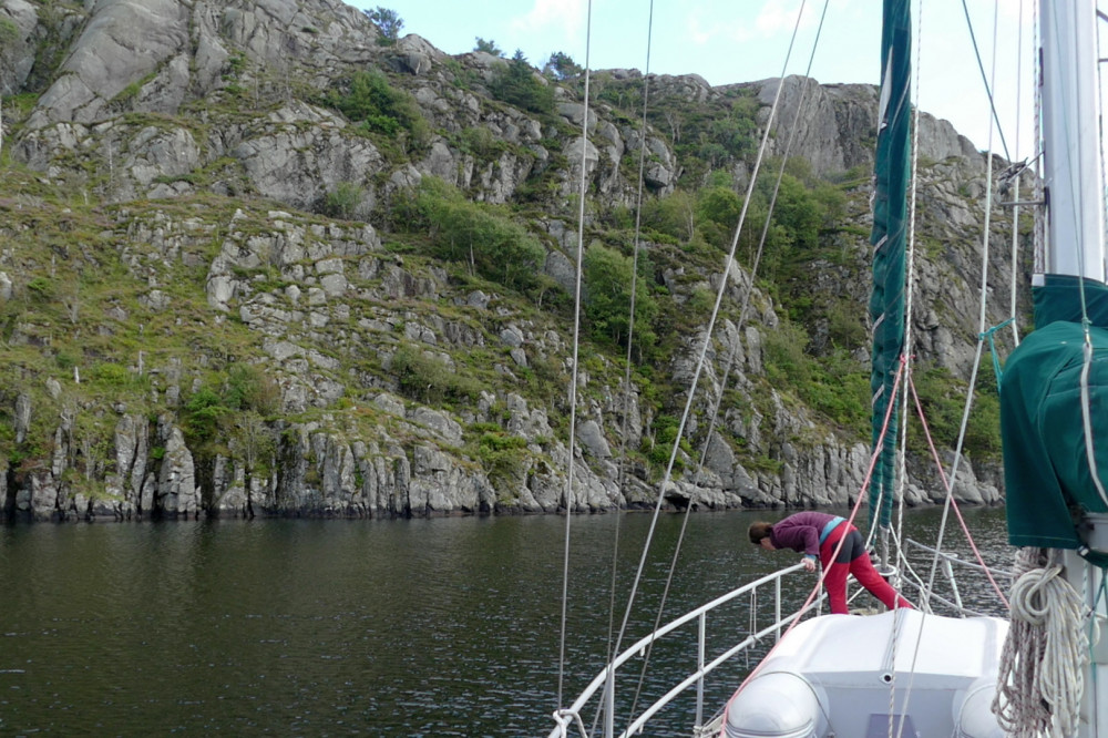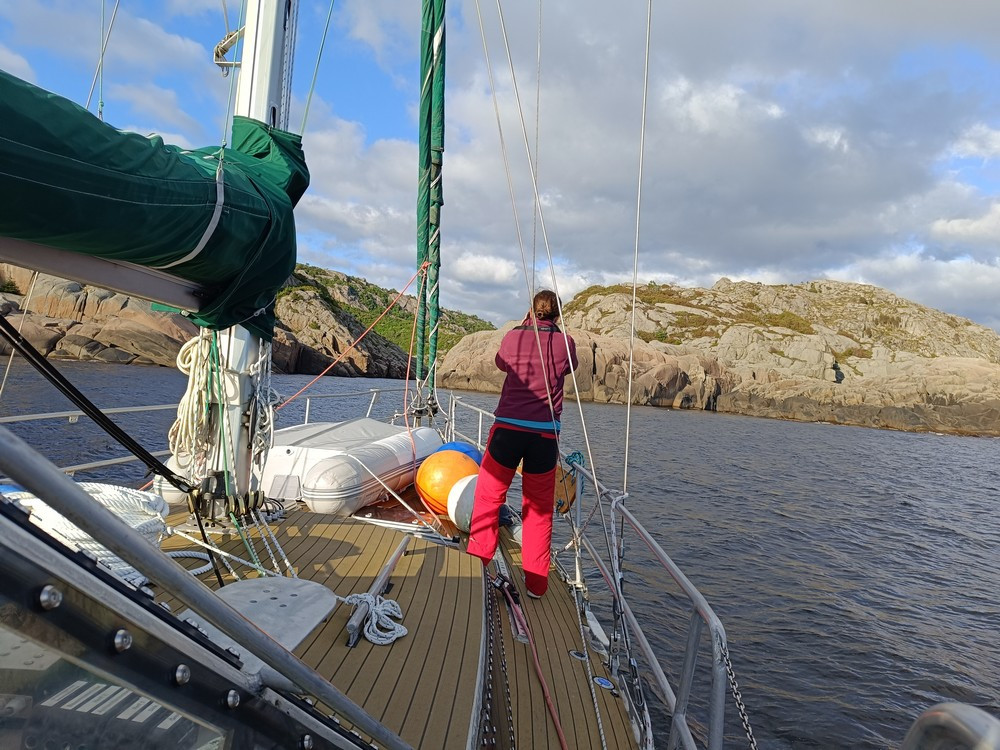Nach einer Google-Recherche während der Ansteuerung von Kirkehamn stelle ich fest, dass eine ziemlich klein wirkende Bucht namens Lindevika tatsächlich ankerbar sein soll. Jedenfalls bei den heutigen, inzwischen sehr gemütlichen Bedingungen. Schon kurz vor der Einfahrt wird uns klar: Das wird hübsch. Außerordentlich sogar.