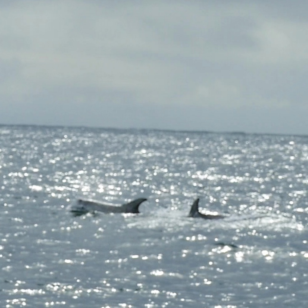 Dreimal sehen wir Schweinswale. Als wir den Leuchtturm der Nordspitze fast querab haben, passieren uns mit kurzem Abstand zwei Delfinschulen. Ganz schöne Brummer, im Vergleich zu den Schweinswalen. Insgesamt fünf Sichtungen an einem Tag können wir nicht oft vermelden, heute überrascht uns das angesichts des Fahrgebiets nicht allzusehr.