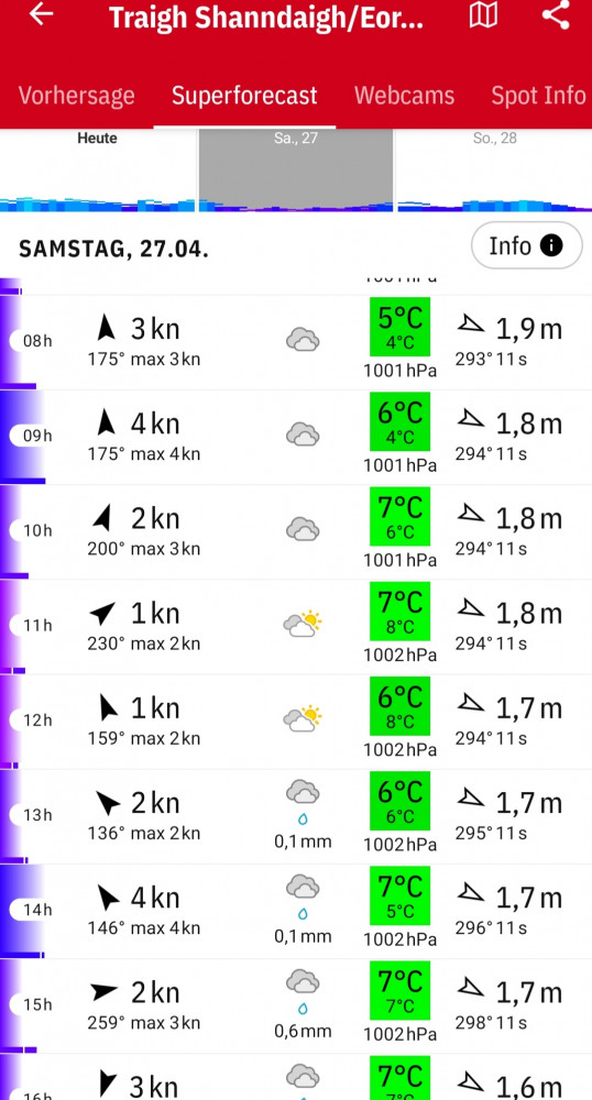 Zu unserer Glückssträhne kommt hinzu, dass die Stunden mit vorteilhafter Tidenströmung komplett auf den Zeitraum mit Tageslicht fallen.