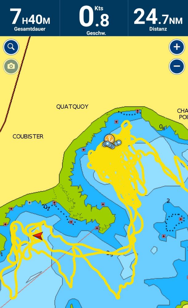 Die Küstenwache bemerkte unsere ungewöhnliche Fahrt über das AIS Ortungssystem und fragte über Funk, ob wir Hilfe benötigen. Zum Glück konnten wir das verneinen.