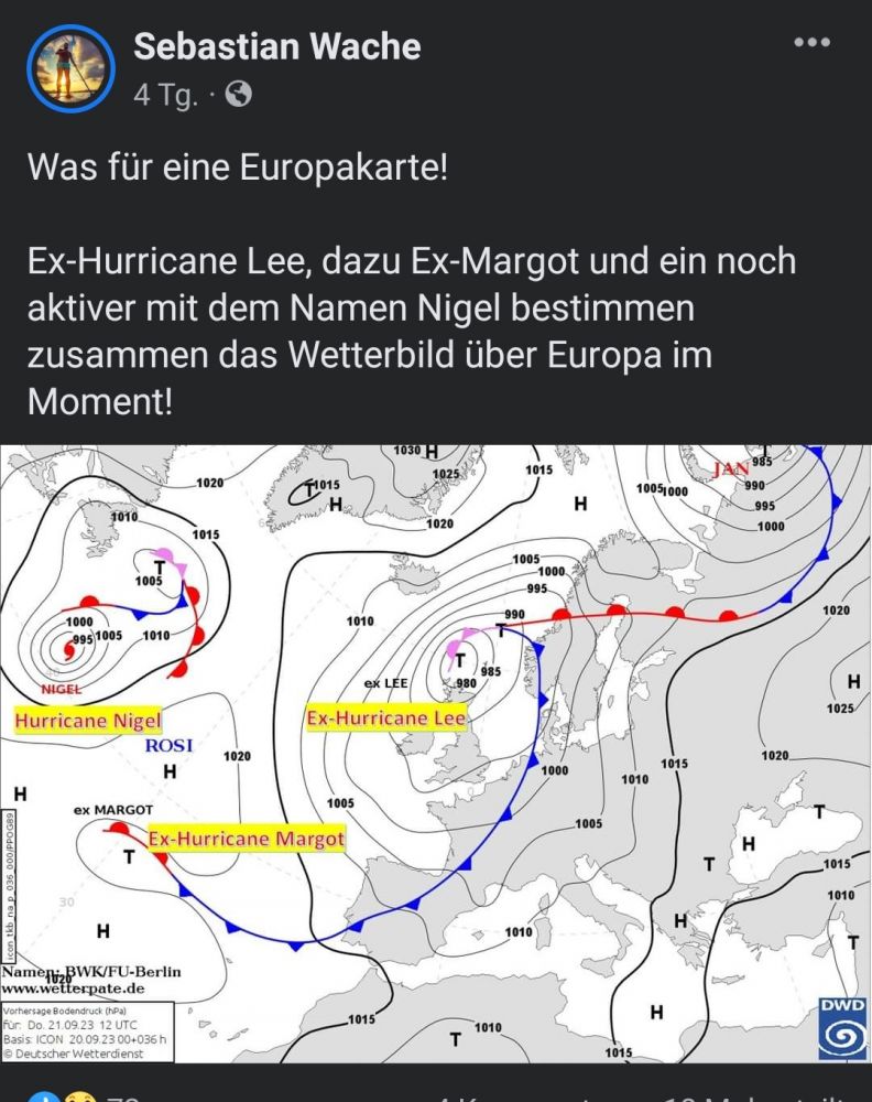 Den Rückweg nach Lerwick hätten wir antreten können, darauf haben wir aber verzichtet. Wir planen weiterhin, die sehr ungewöhnliche Großwetterlage (es sind momentan 3 Hurricanes/Ex-Hurricanes auf dem Nordatlantik unterwegs) abzuwettern und nach Beruhigung der Situation weiterzuziehen.